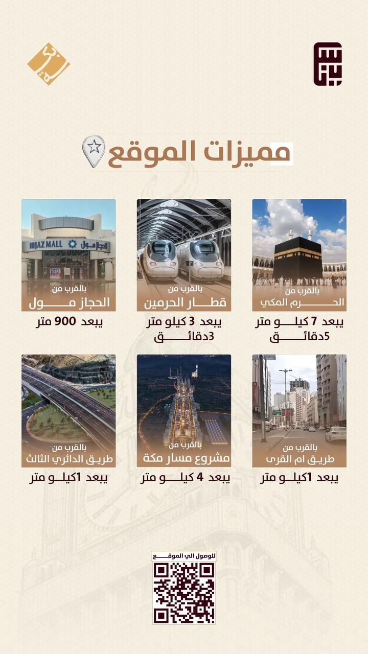 ويُعد المشروع فرصة سكنية واستثمارية واعدة، حيث يجمع بين القيمة العقارية العالية والطلب المستمر في مدينة مكة المكرمة، ليكون خيارًا مثاليًا للسكن أو الاستثمار طويل الأمد.